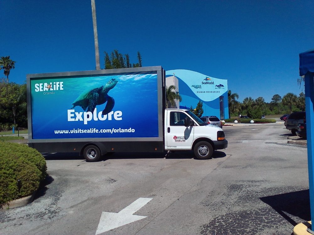 Our truck was leased by Guerrilla Billboards for a 10-day campaign in Orlando, FL advertising to the Orlando Eye and Orlando Sea Life.  The banners came out beautifully!  Take a look at some of our favorite photos!